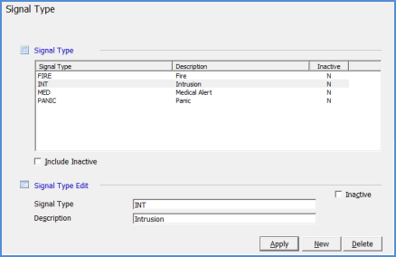 If tracking Zone information with the Central Station Tracking options of a Customer's System record, you may associate a signal type with each zone.
