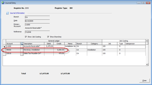 The entire Journal Entry for a transaction line displayed in the Account Register results may be viewed by double-clicking on a transaction line.